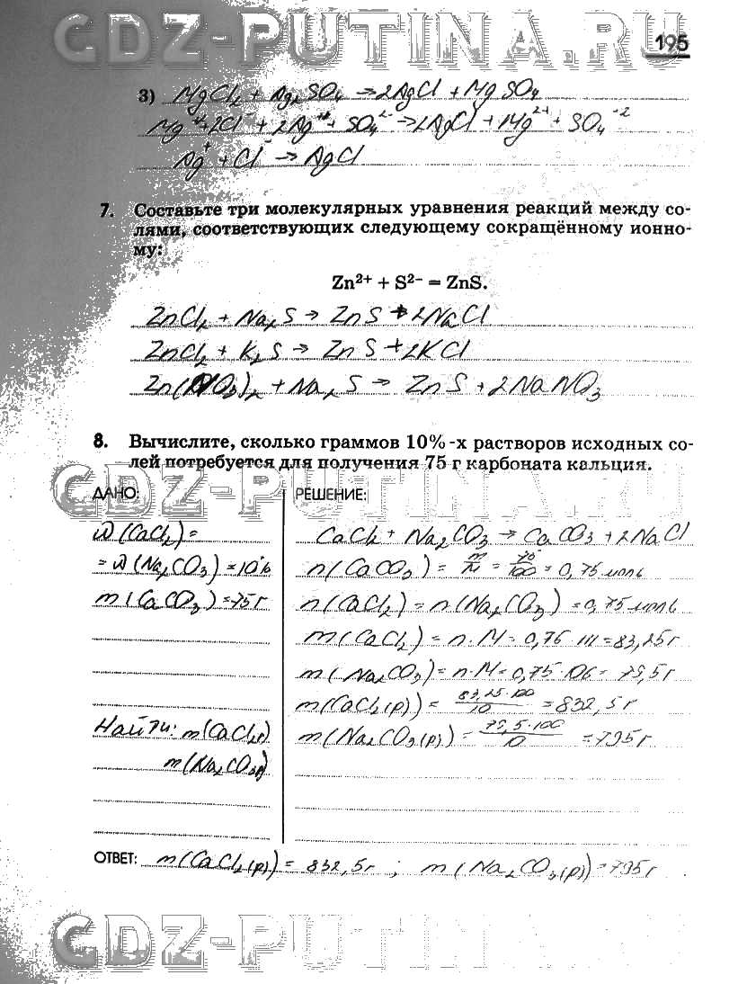 Решения домашних заданий по химии 8 класс Габриелян 195 упражнение Рабочая тетрадь