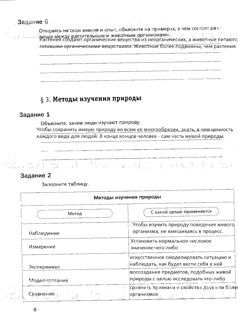 Решения домашних заданий по биологии 5 класс Корнилова, Николаев, Симонова 8 упражнение рабочая тетрадь