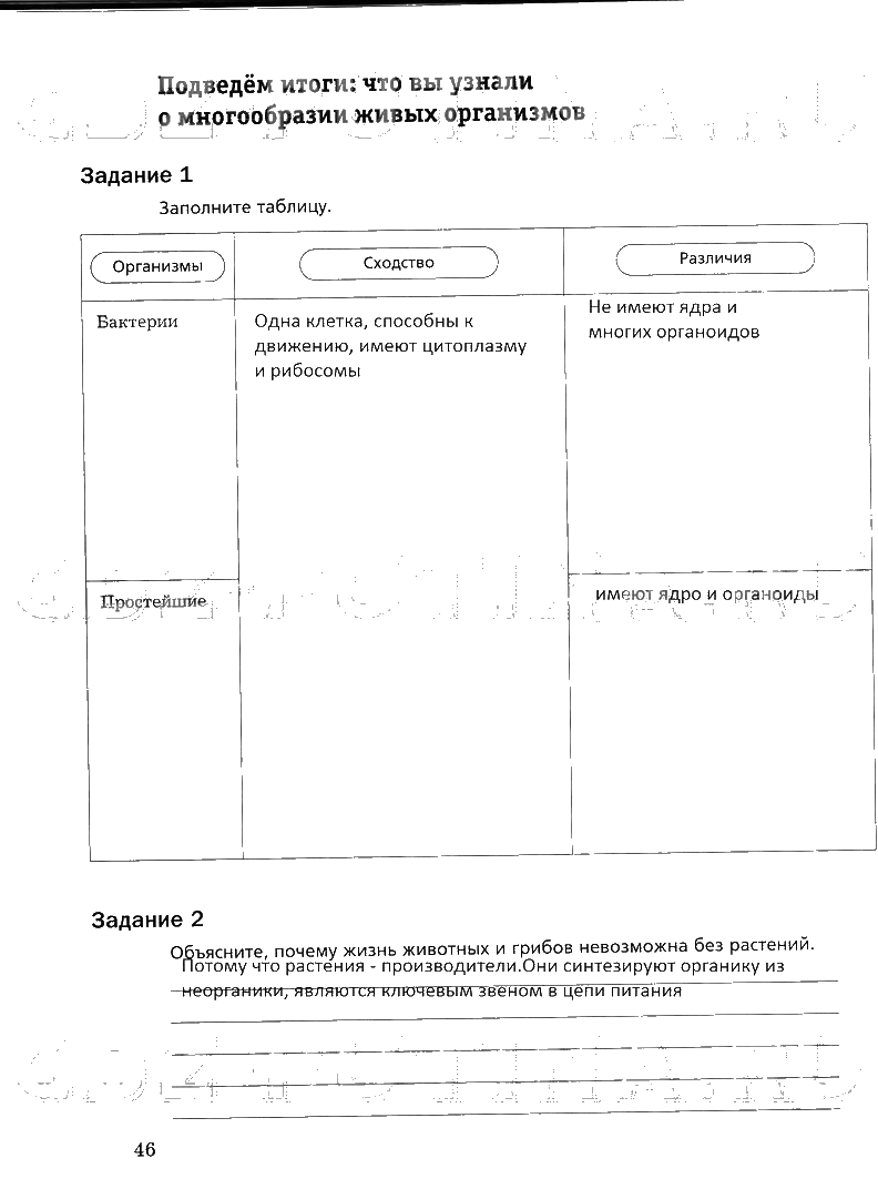 Решения домашних заданий по биологии 5 класс Корнилова, Николаев, Симонова 46 упражнение рабочая тетрадь