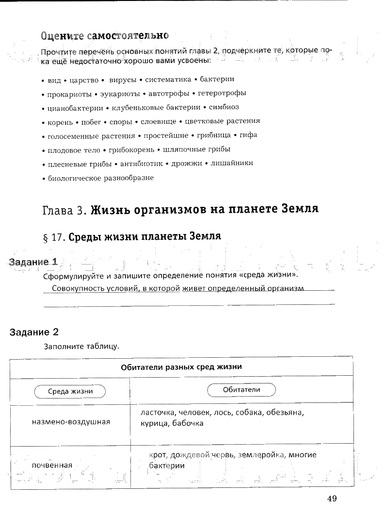 Решения домашних заданий по биологии 5 класс Корнилова, Николаев, Симонова 49 упражнение рабочая тетрадь