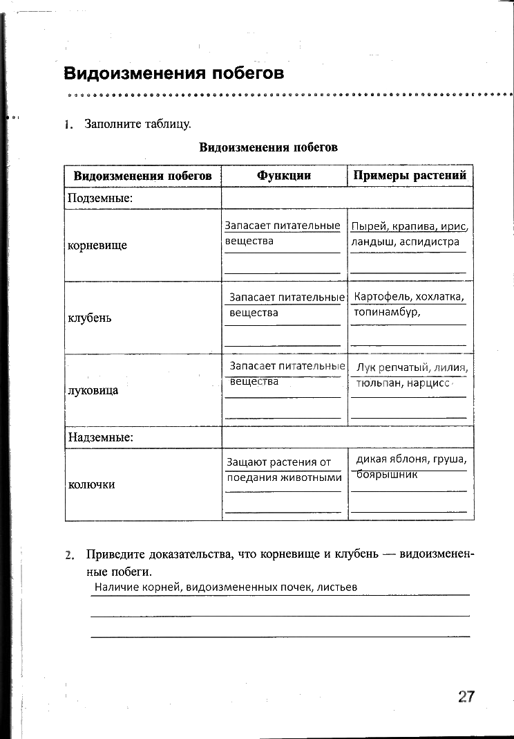 Решения домашних заданий по биологии 6 класс Преображенская 27 упражнение рабочая тетрадь