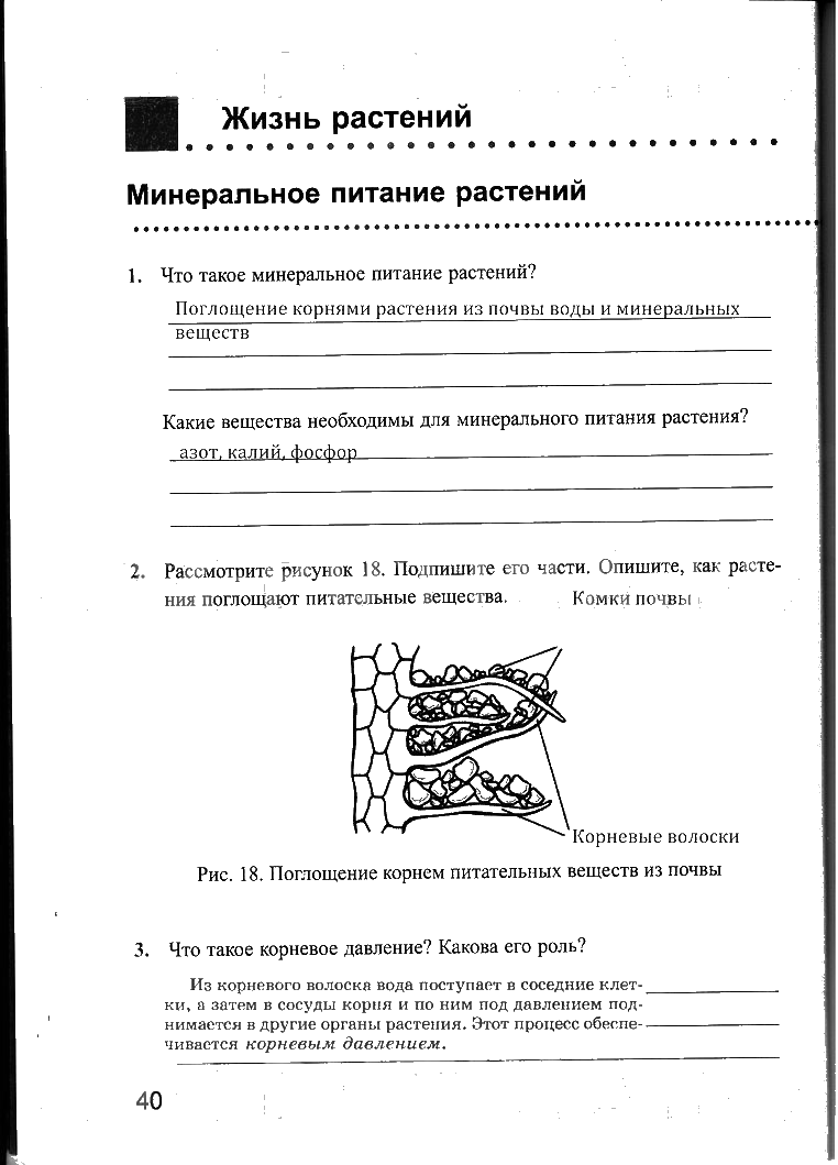 Решения домашних заданий по биологии 6 класс Преображенская 40 упражнение рабочая тетрадь