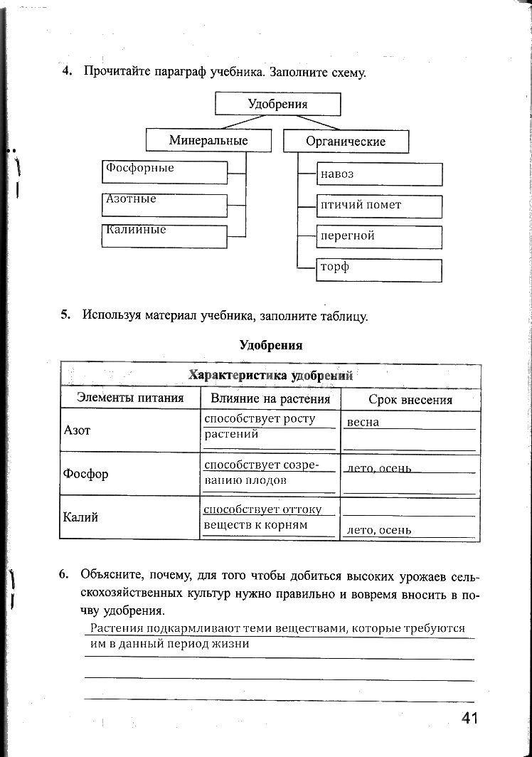 Решения домашних заданий по биологии 6 класс Преображенская 41 упражнение рабочая тетрадь