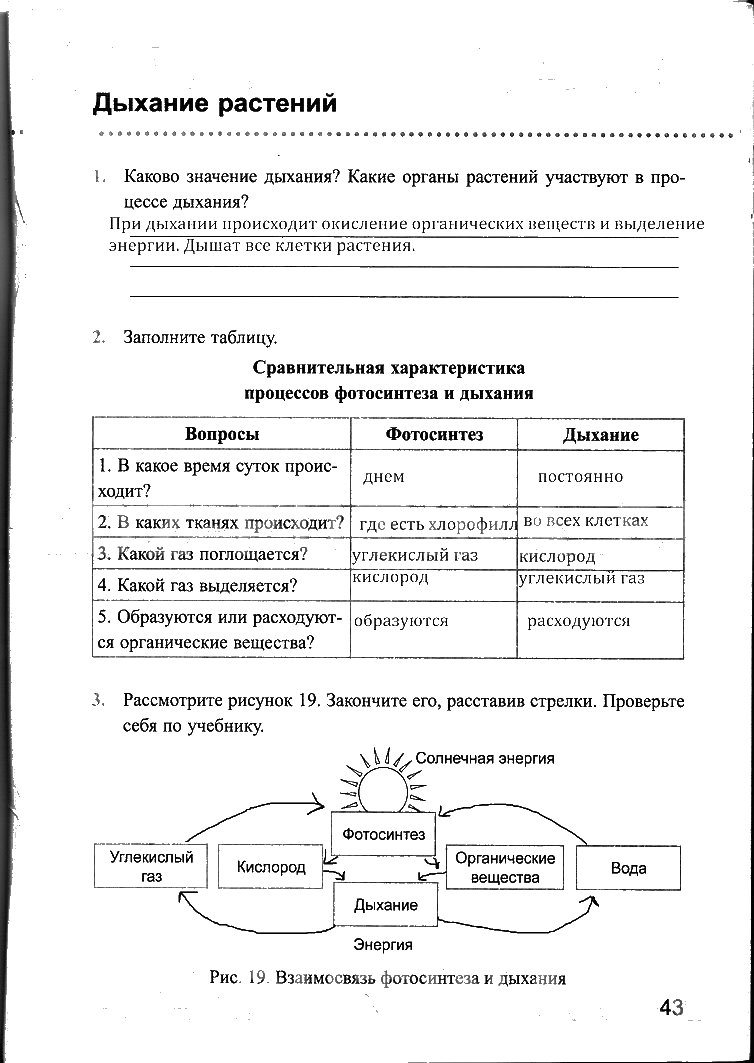 Решения домашних заданий по биологии 6 класс Преображенская 43 упражнение рабочая тетрадь