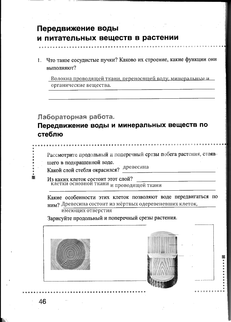 Решения домашних заданий по биологии 6 класс Преображенская 46 упражнение рабочая тетрадь