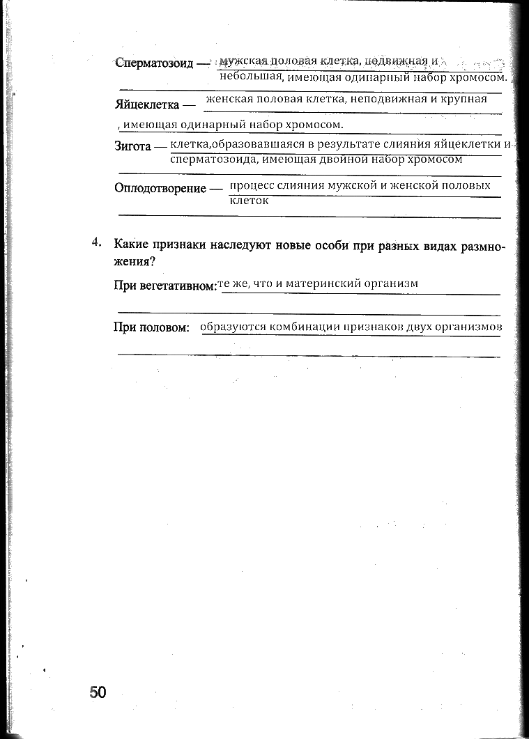Решения домашних заданий по биологии 6 класс Преображенская 50 упражнение рабочая тетрадь