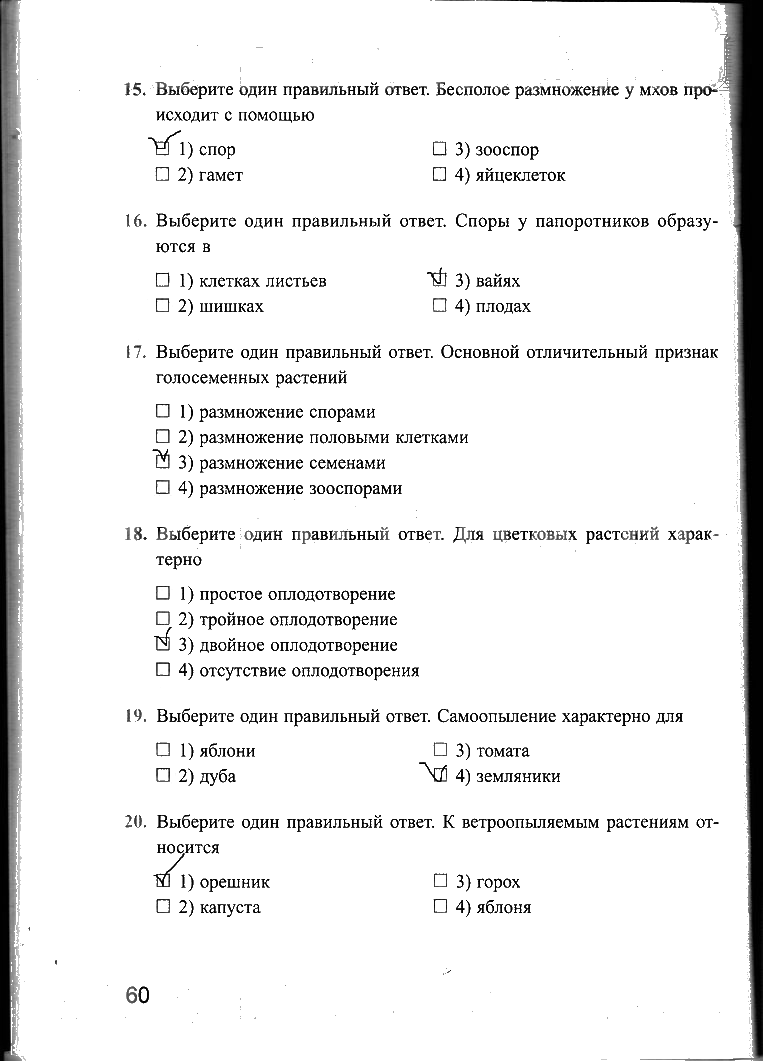 Решения домашних заданий по биологии 6 класс Преображенская 60 упражнение рабочая тетрадь