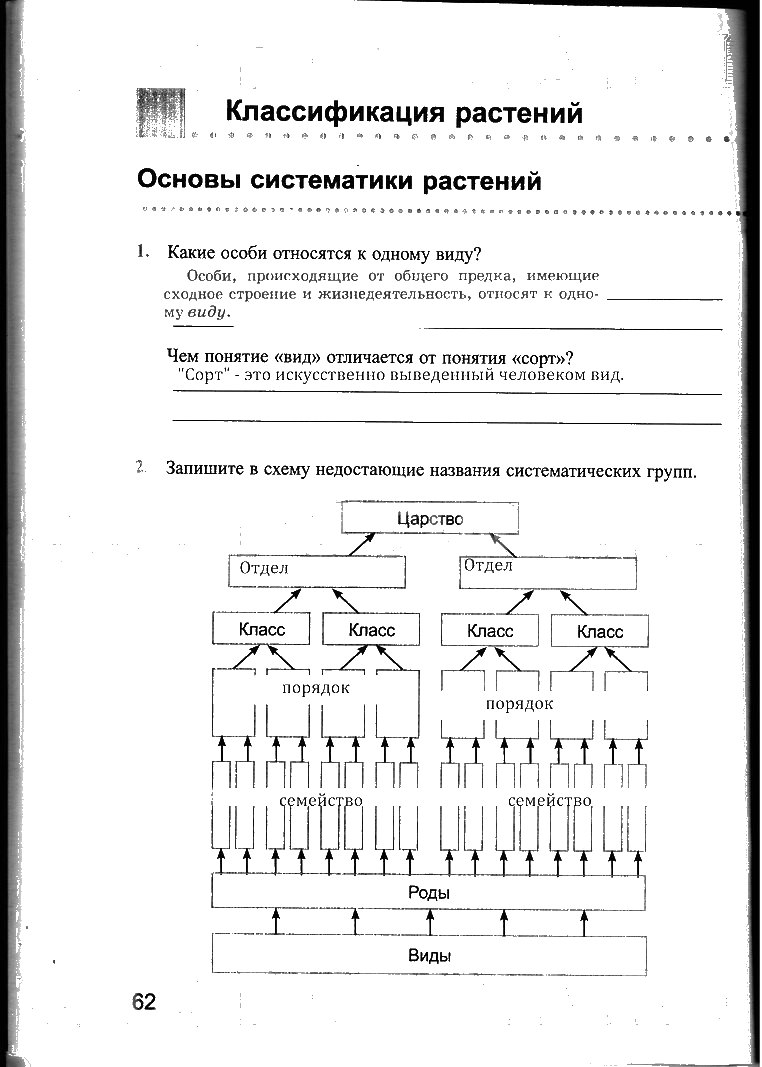 Решения домашних заданий по биологии 6 класс Преображенская 62 упражнение рабочая тетрадь