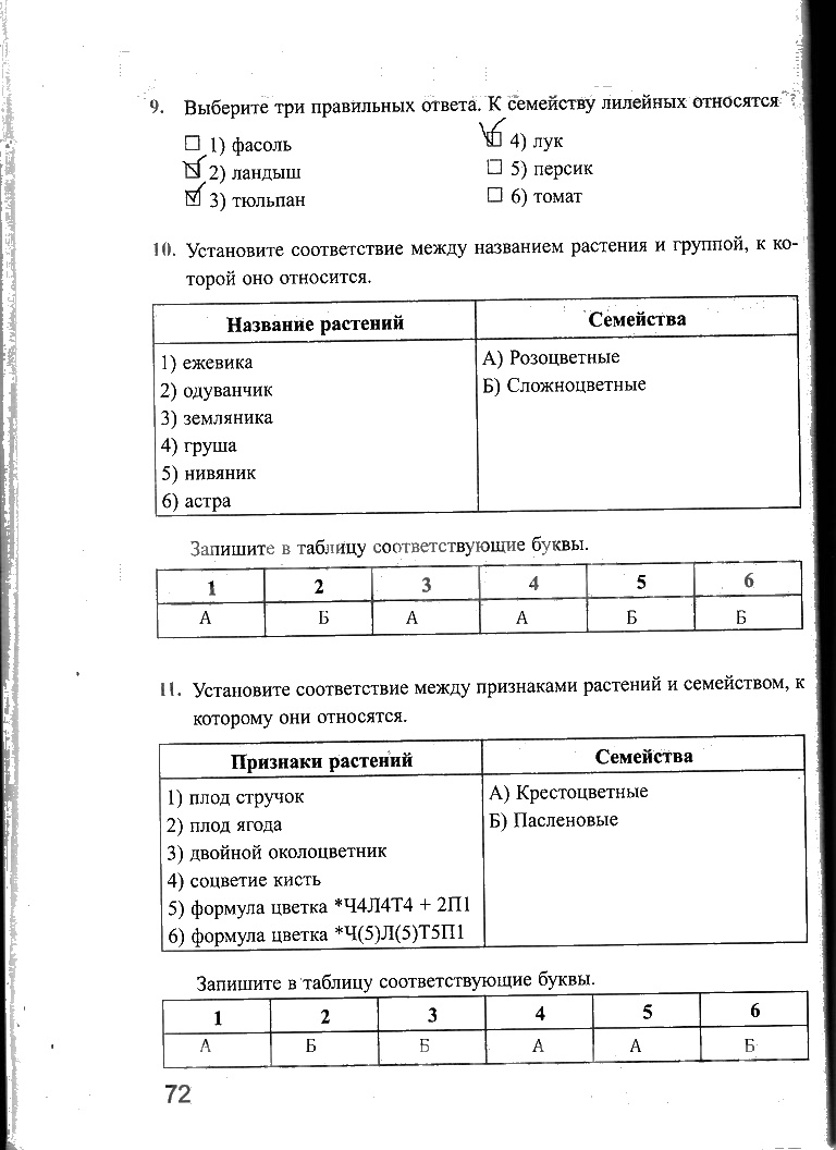 Решения домашних заданий по биологии 6 класс Преображенская 72 упражнение рабочая тетрадь