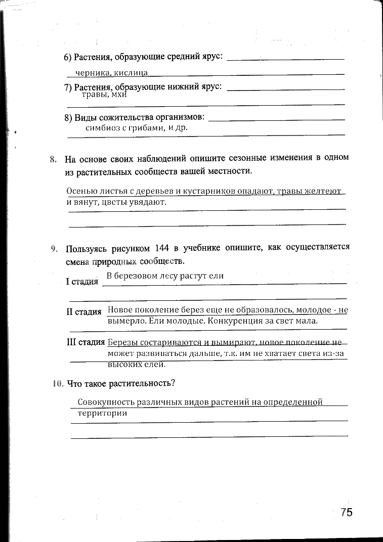 Решения домашних заданий по биологии 6 класс Преображенская 75 упражнение рабочая тетрадь