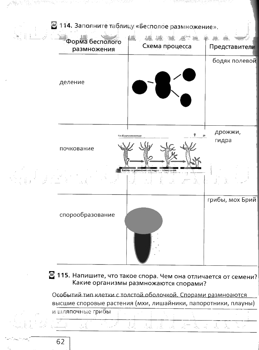 Решения домашних заданий по биологии 6 класс Сонина 62 упражнение рабочая тетрадь