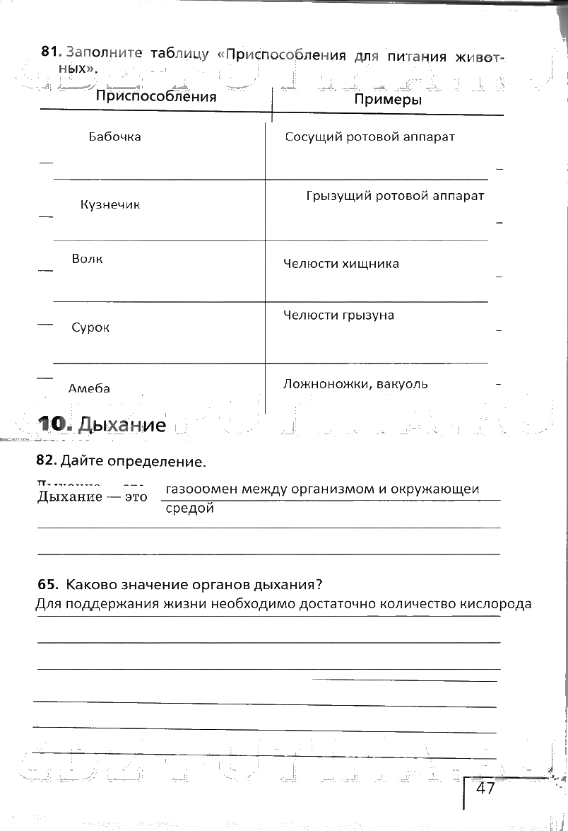 Решения домашних заданий по биологии 6 класс Сонин 47 упражнение рабочая тетрадь