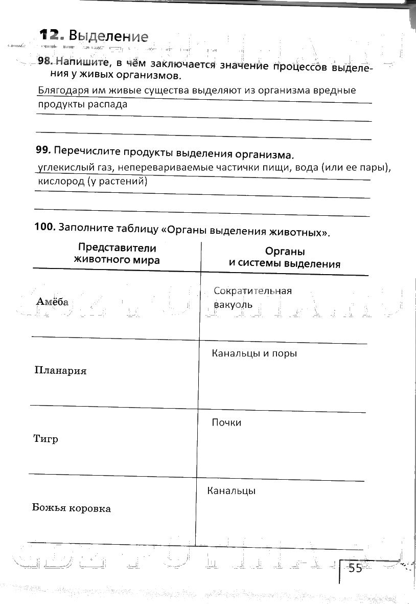 Решения домашних заданий по биологии 6 класс Сонин 55 упражнение рабочая тетрадь