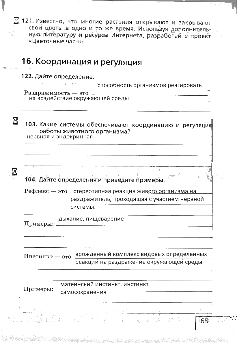 Решения домашних заданий по биологии 6 класс Сонин 65 упражнение рабочая тетрадь