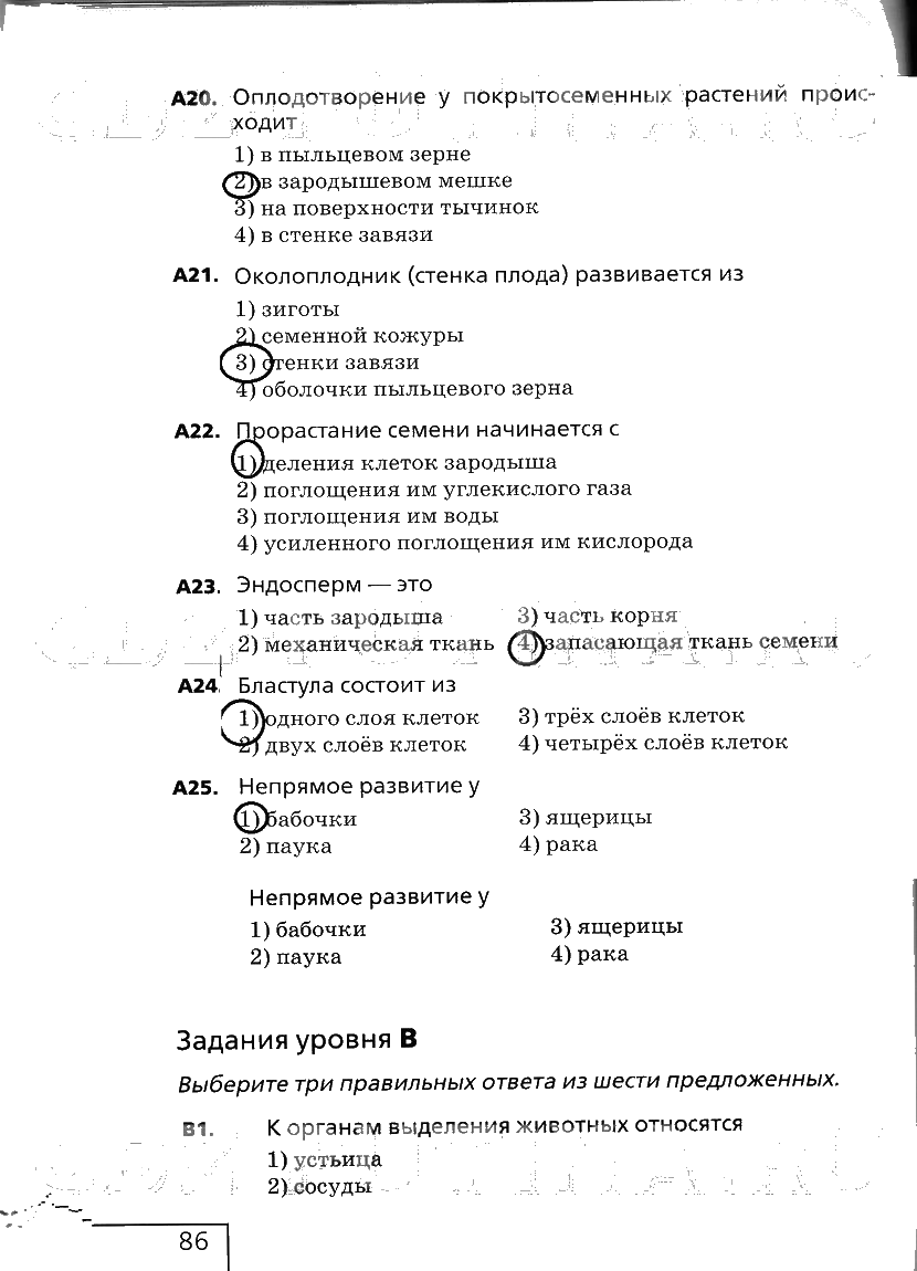 Решения домашних заданий по биологии 6 класс Сонин 86 упражнение рабочая тетрадь