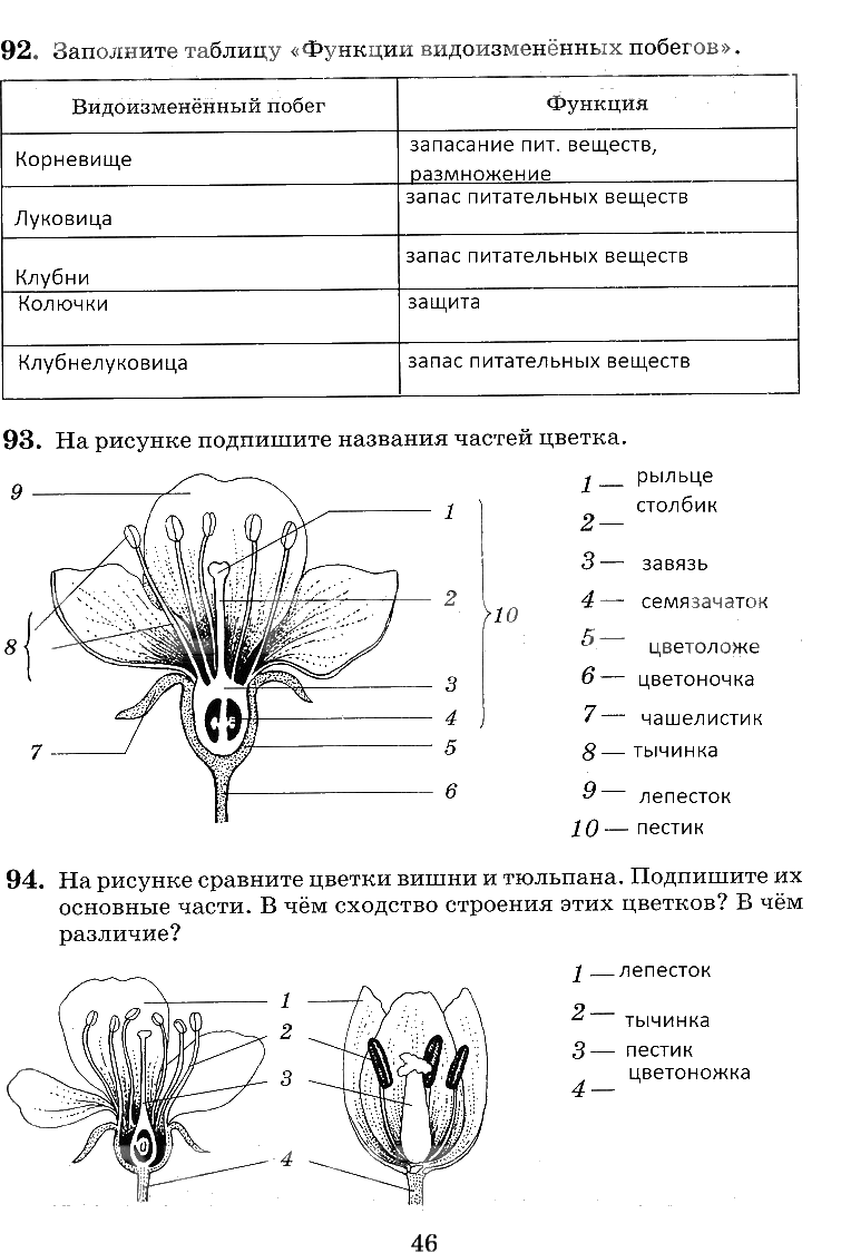 Решения домашних заданий по биологии 6 класс Пасечник 46 упражнение рабочая тетрадь