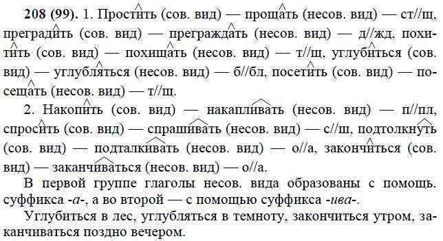 Решения домашних заданий по русскому языку 6 класс Лидман-Орлова А.К. 208(99) упражнение
