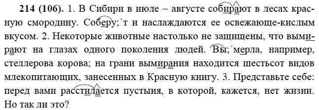 Решения домашних заданий по русскому языку 6 класс Лидман-Орлова А.К. 214(106) упражнение