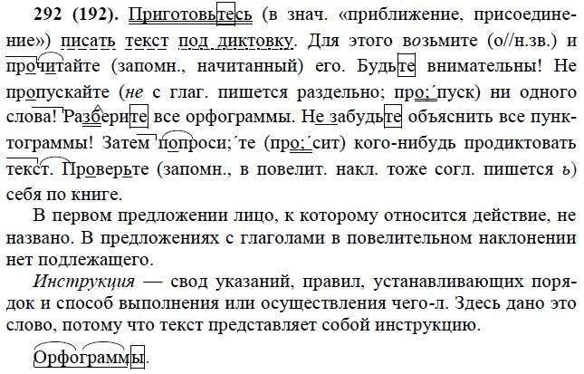 Решения домашних заданий по русскому языку 6 класс Лидман-Орлова А.К. 292(192) упражнение