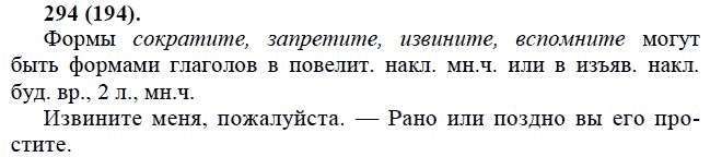 Решения домашних заданий по русскому языку 6 класс Лидман-Орлова А.К. 294(194) упражнение