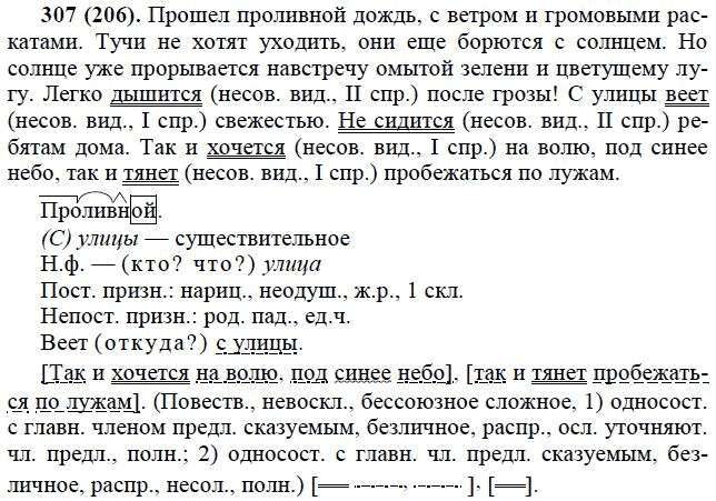 Решения домашних заданий по русскому языку 6 класс Лидман-Орлова А.К. 307(206) упражнение
