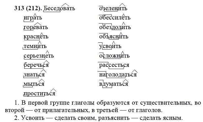 Решения домашних заданий по русскому языку 6 класс Лидман-Орлова А.К. 313(212) упражнение