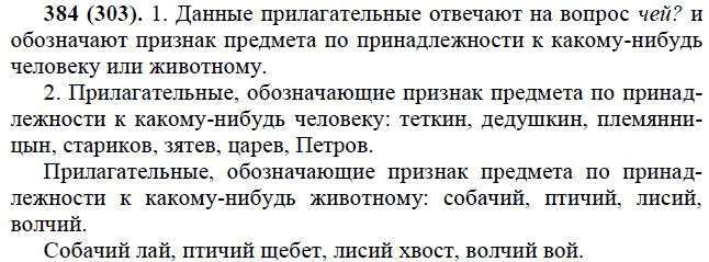 Решения домашних заданий по русскому языку 6 класс Лидман-Орлова А.К. 384(303) упражнение