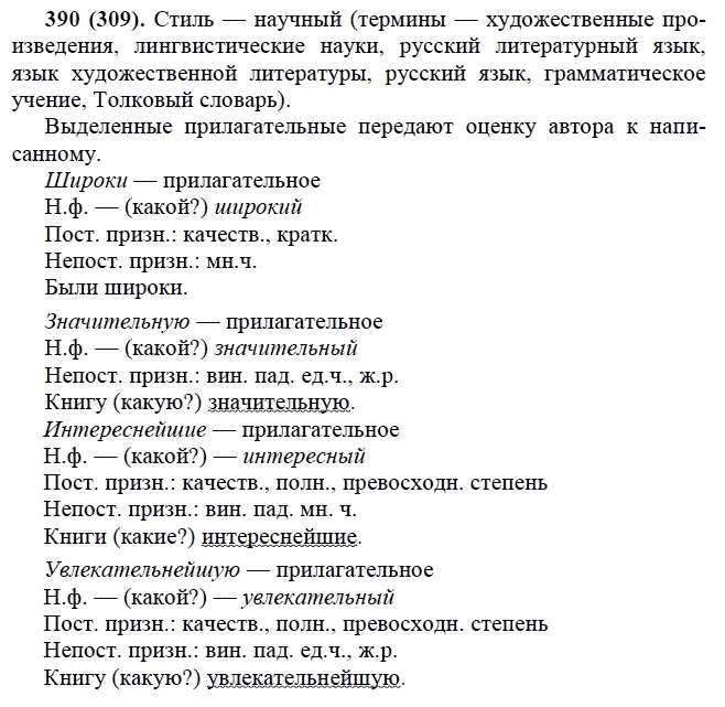 Решения домашних заданий по русскому языку 6 класс Лидман-Орлова А.К. 390(309) упражнение