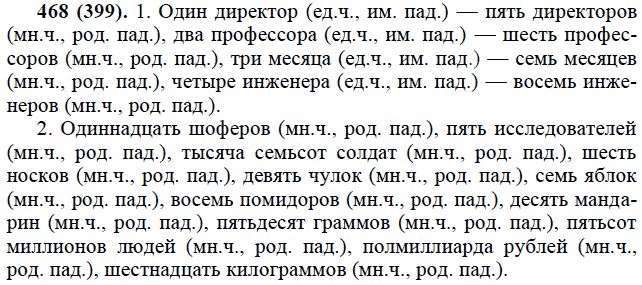 Решения домашних заданий по русскому языку 6 класс Лидман-Орлова А.К. 468(399) упражнение