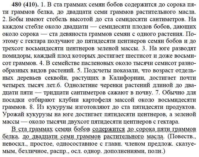 Решения домашних заданий по русскому языку 6 класс Лидман-Орлова А.К. 480(410) упражнение
