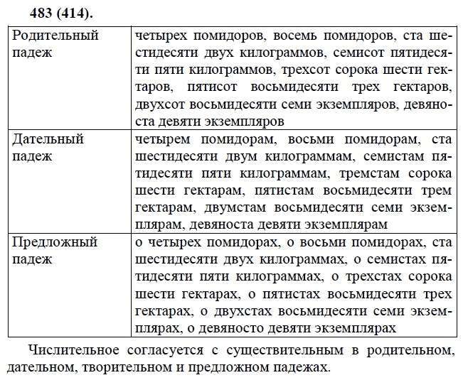 Решения домашних заданий по русскому языку 6 класс Лидман-Орлова А.К. 483(414) упражнение