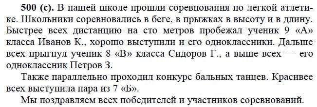 Решения домашних заданий по русскому языку 6 класс Лидман-Орлова А.К. 500(c) упражнение