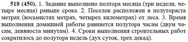 Решения домашних заданий по русскому языку 6 класс Лидман-Орлова А.К. 518(450) упражнение