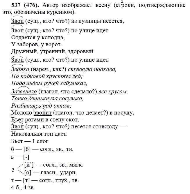 Решения домашних заданий по русскому языку 6 класс Лидман-Орлова А.К. 537(476) упражнение