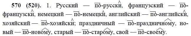 Решения домашних заданий по русскому языку 6 класс Лидман-Орлова А.К. 570(520) упражнение