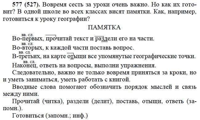 Решения домашних заданий по русскому языку 6 класс Лидман-Орлова А.К. 577(527) упражнение