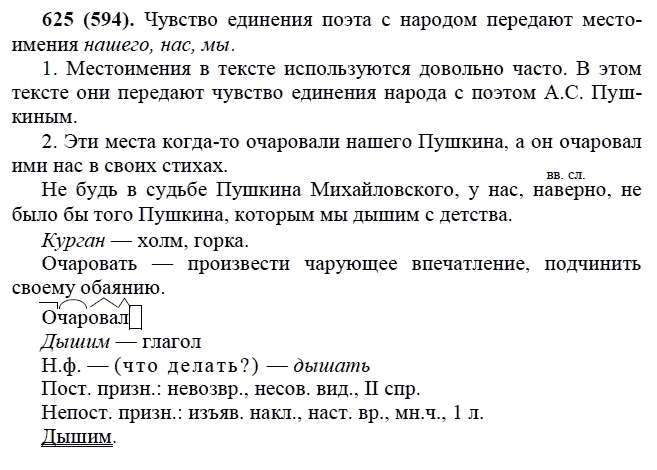 Решения домашних заданий по русскому языку 6 класс Лидман-Орлова А.К. 625(594) упражнение