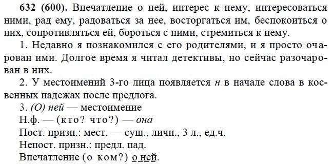 Решения домашних заданий по русскому языку 6 класс Лидман-Орлова А.К. 632(600) упражнение