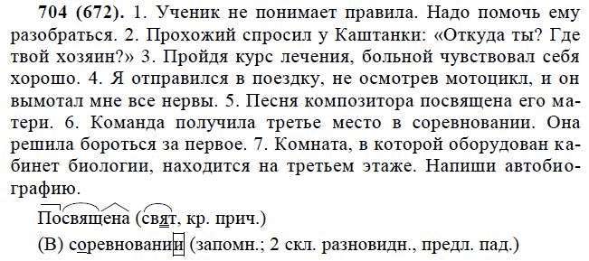Решения домашних заданий по русскому языку 6 класс Лидман-Орлова А.К. 704(672) упражнение