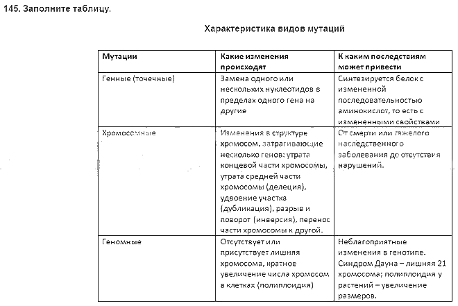 Решения домашних заданий по биологии 9 класс Пасечник, Швецов 145 упражнение рабочая тетрадь