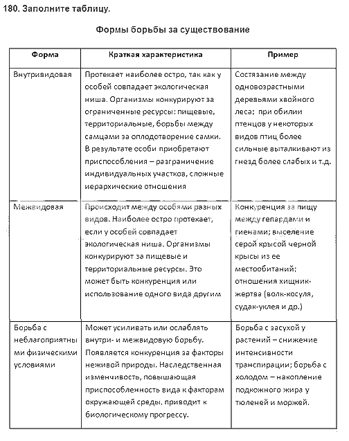 Решения домашних заданий по биологии 9 класс Пасечник, Швецов 180 упражнение рабочая тетрадь