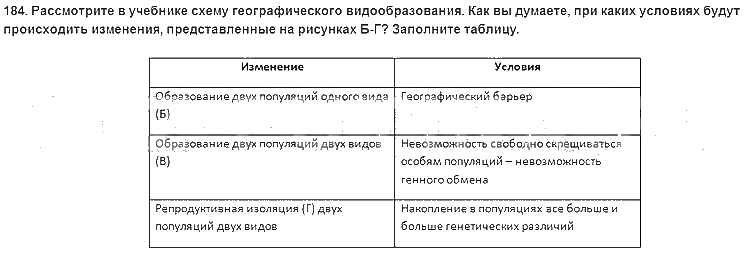 Решения домашних заданий по биологии 9 класс Пасечник, Швецов 184 упражнение рабочая тетрадь