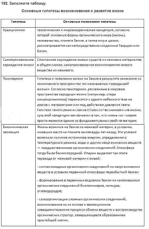 Решения домашних заданий по биологии 9 класс Пасечник, Швецов 192 упражнение рабочая тетрадь