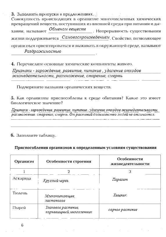 Решения домашних заданий по биологии 9 класс Козлова, Кучменко 6 упражнение рабочая тетрадь