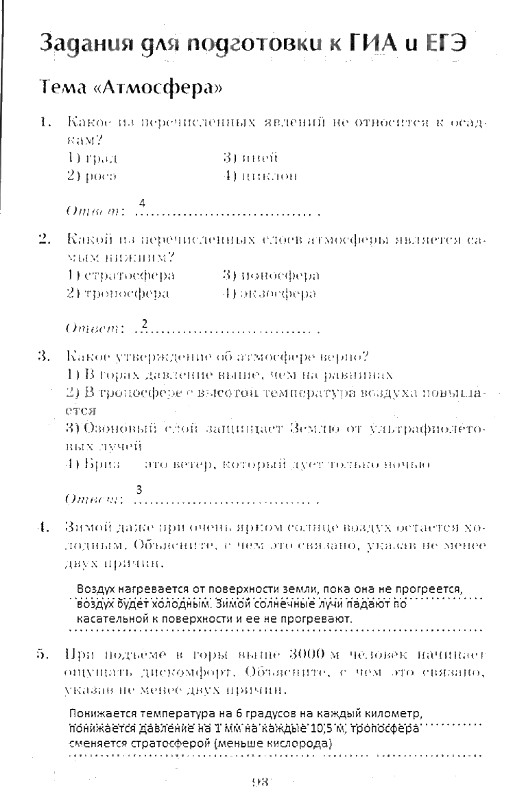 Решения домашних заданий по географии 6 класс Герасимова, Неклюкова 93 упражнение Начальный курс географии