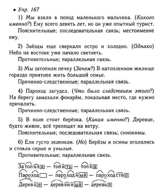 Решения домашних заданий по русскому языку 6 класс Львова С.И., Львов В.В. 167 упражнение