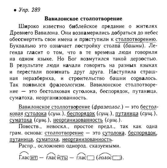 Решения домашних заданий по русскому языку 6 класс Львова С.И., Львов В.В. 289 упражнение