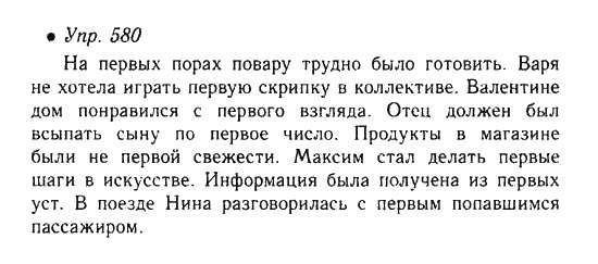 Решения домашних заданий по русскому языку 6 класс Львова С.И., Львов В.В. 580 упражнение