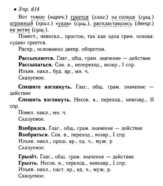 Решения домашних заданий по русскому языку 6 класс Львова С.И., Львов В.В. 614 упражнение