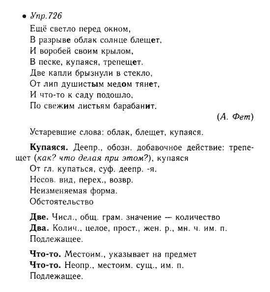 Решения домашних заданий по русскому языку 6 класс Львова С.И., Львов В.В. 726 упражнение